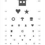 Več razpoložljivih optipov za iluminirano tablo OKO – prilagodljiva (izberite vrstice ali posamezne ikone), zanesljiva in enostavna za uporabo. Za tablo so na voljo naslednje folije Optotype: simboli za otroke – slike, črke ali številke.